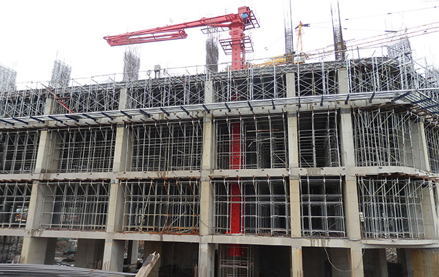 配置自動爬升系統,在電梯井道內或樓板上自動頂升,使布料機隨著樓層的升高而升高。