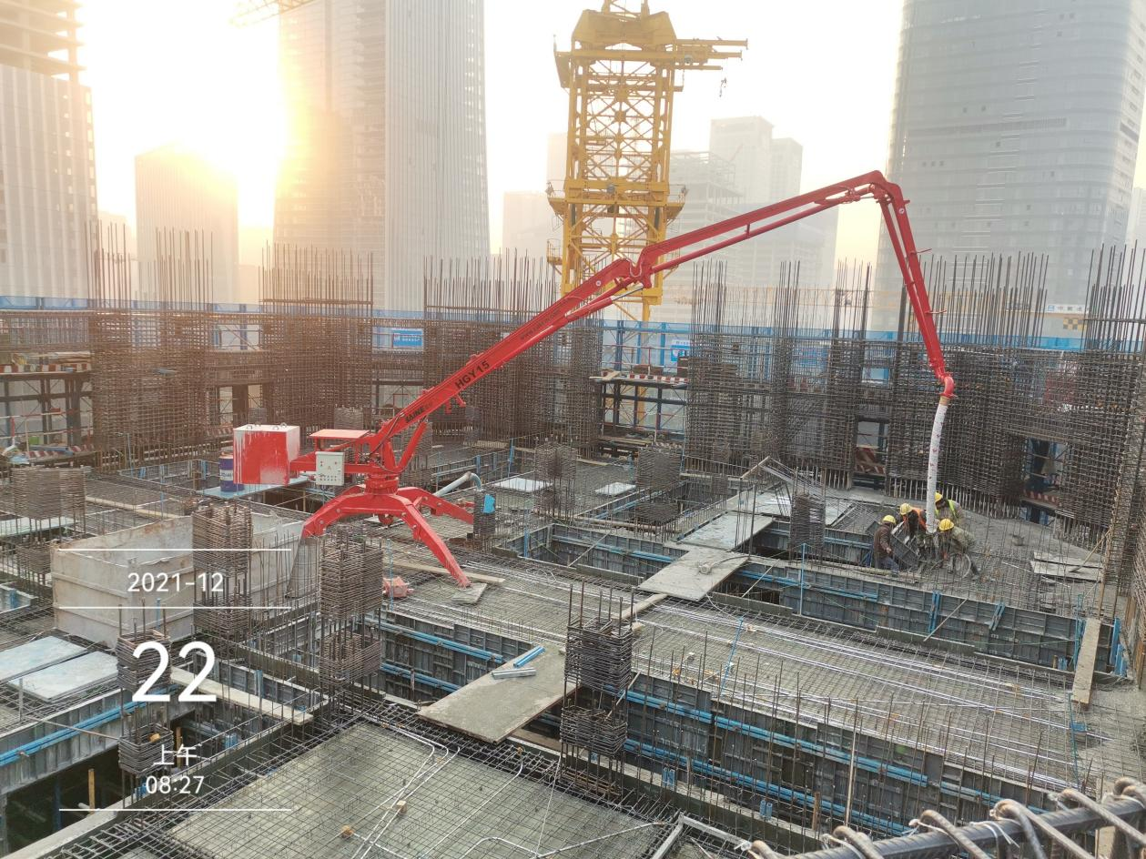 濟(jì)南復(fù)地國(guó)際金融中心260米超高層項(xiàng)目將建53層超高層辦公塔樓一棟,最高處達(dá)260米。該項(xiàng)目總建筑面積128680平方米,地上總建筑面積126267平方米,地上包含辦公、商業(yè)功能區(qū)。地下建筑面積2213平方米。其室外地坪至最高點(diǎn)達(dá)260米。A1地塊總停車位757輛。該項(xiàng)目使用的布料機(jī)為凱博科技生產(chǎn)的HGY15移動(dòng)式布料機(jī)。