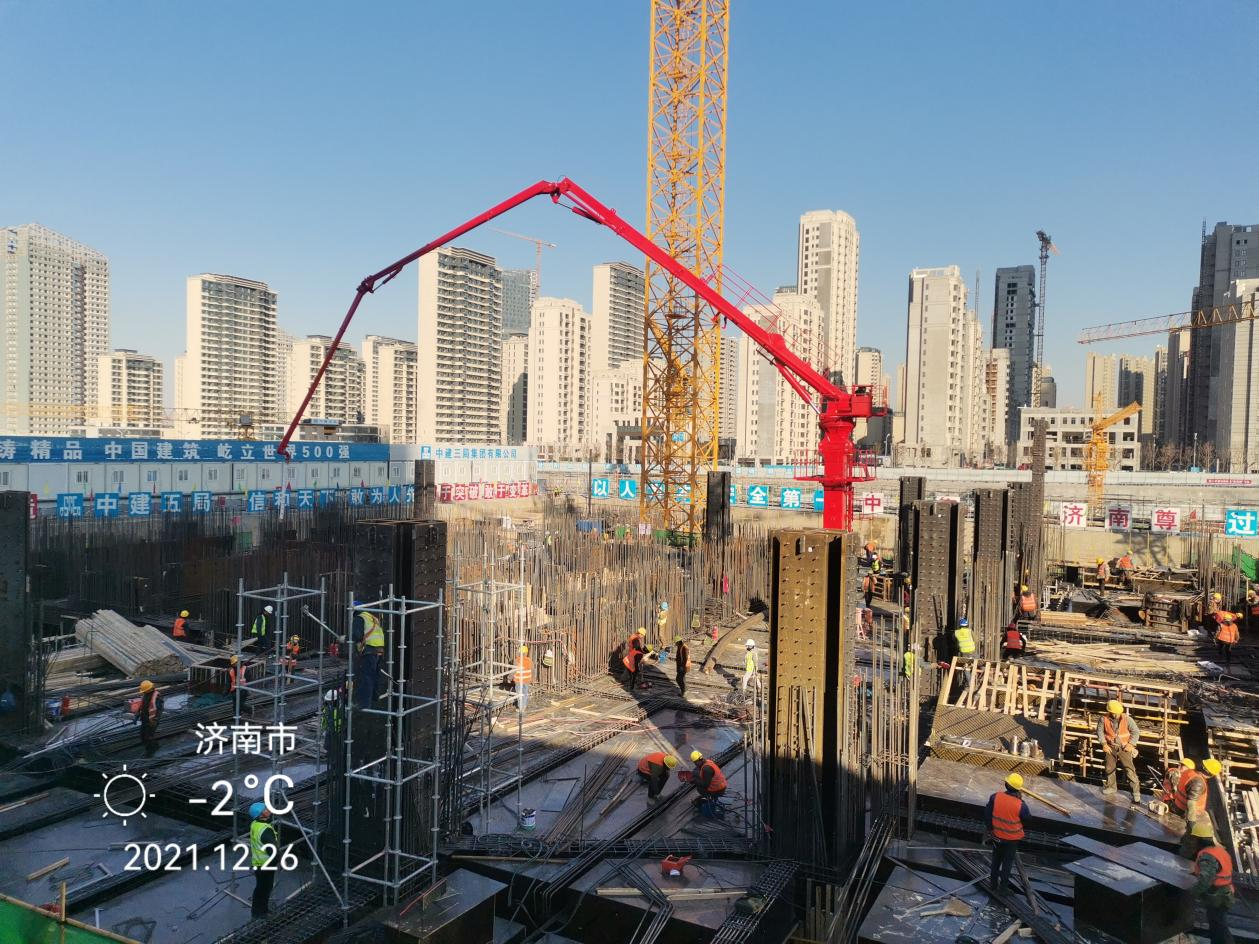 中信泰富·濟(jì)南尊超高層項(xiàng)目位于濟(jì)南CBD核心區(qū),新濼大街以北,茂嶺三號(hào)路以西,綢帶公園以東,占地面積2.13萬(wàn)平方米,總建筑面積28.23萬(wàn)平方米。項(xiàng)目共建設(shè)2棟商務(wù)樓及大型商業(yè)裙房,其中T1塔樓地上64層,總高度326米;T2塔樓地上23層,總高度123米。項(xiàng)目建成后,將成為濟(jì)南又一座突破300米的超高層建筑。該項(xiàng)目使用的布料機(jī)為凱博科技生產(chǎn)的HGY32樓板爬升式布料機(jī)。